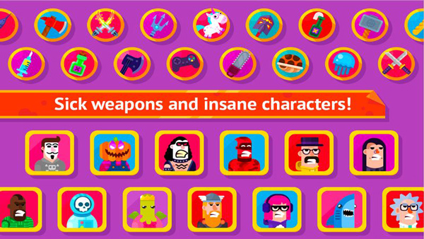 随着游戏的深入玩家可以逐渐解锁出多种角色,这些角色手中的武器可不是一成不变的,弓箭、匕首、标枪、注射器甚至是硫酸都有可能出现,暴力的斧头是小编最爱的一种。值得一提的是,游戏模式远不止双方互砍这一种,玩家还可以挑战射击对方头上的水果、天上飞动的鸟群等等,每一次模式的转换都是另一种“惨”况的出现,十分考验玩家的心理承受能力。小编精选