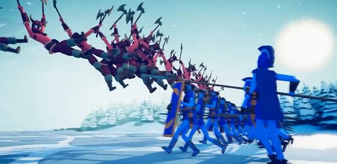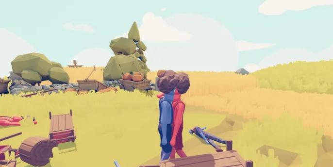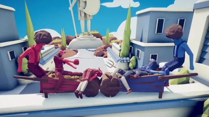 而实际上战斗上的效果,也可能不像你想象的那样严肃。非要做个形容的话,游戏里的红蓝小兵们就像是《人类一败涂地》里玩家操纵的小人一样,属于天生肌无力。你也不用去期待那些兵种会给你带来怎样真实的战争场景,真实的游戏画面就是一大群又一大群的人挤成一堆互相拥抱乱打。