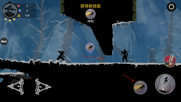 3、走到这里解锁新技能,二连跳,使用二连跳跳过障碍,一直往前走。