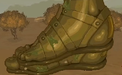 第二个BOSS是青铜巨人,玩家会在遇到青铜巨人之前在一个普通关卡的背景里看到青铜巨人的整条腿。