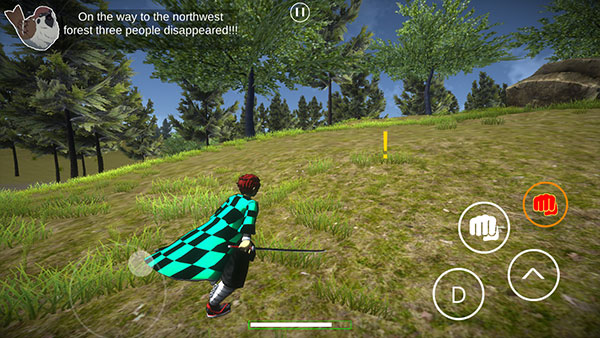 4、在屏幕左侧滑动可以呼出操纵角色前进后退的移动按钮,游戏内左上角是任务目标,对应在任意方位的一个感叹号,控制角色朝着感叹号奔跑。