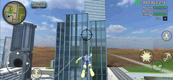 4、像行动快速且机智灵敏的蜘蛛人一样,进行蛛丝飞荡、飞墙走壁并发射蛛网;