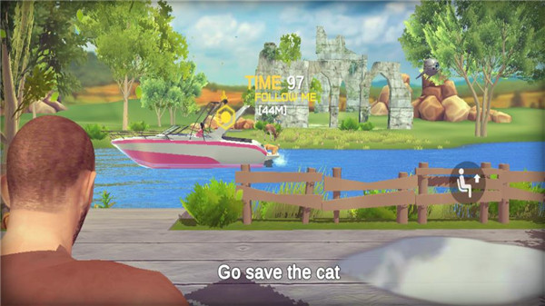 2、在驾驶无人机时需要注意,在追上船只的时候需要快速的点击猫咪按钮