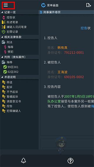 律法之地是一款扮演警方撰写调查卷宗的游戏。玩家将扮演一个警察,通过阅读案件相关证据与调查文件,了解案情,然后撰写调查报告。根据法律条款、判例和审案经验来作出合理的判断与决策,最终给出调查意见。