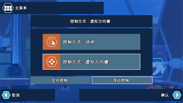 2、小编在此主要为各位小伙伴介绍一下游戏的控制方式如何设置,游戏内共为各位小伙伴提供了两种控制方式,分别为休闲和虚拟方向键,若未特别设置则默认为虚拟方向键,还可以选择其中的定点控制或者浮动控制