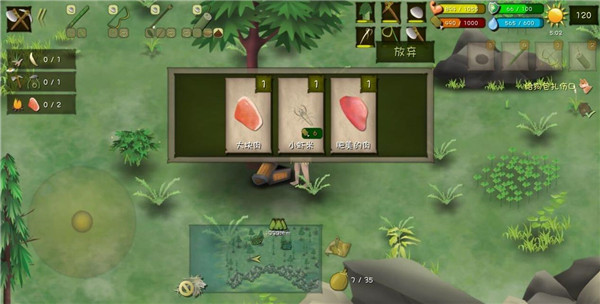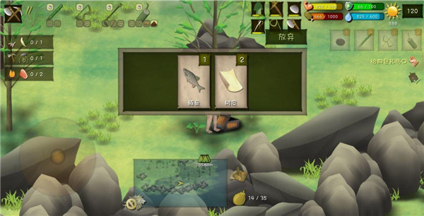 5、捕猎是个技术活游戏中有不少投掷类工具,石头,竹叉,弓箭。有时候你会碰到一些猎物,如草原上的兔子,池塘里的鱼。