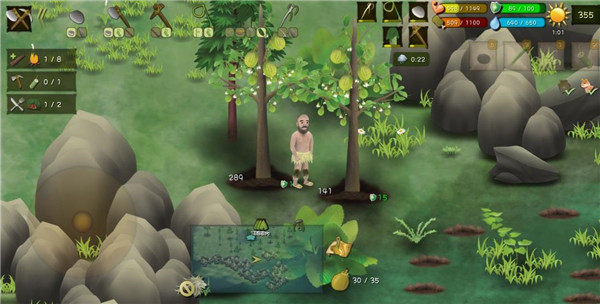 游戏中有不少投掷类工具,石头,竹叉,弓箭。有时候你会碰到一些猎物,如草原上的兔子,池塘里的鱼。你需要用你的投掷工具瞄准猎物进行猎杀,当然不同的猎物需要不同的投掷工具