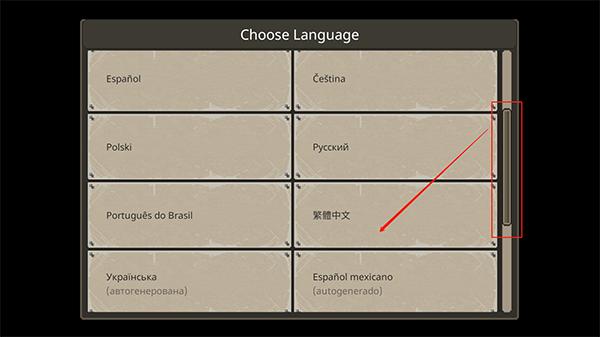 1、初次进入游戏我们需要手动选择语言,下滑找到“繁体中文”字样点击即可切换;