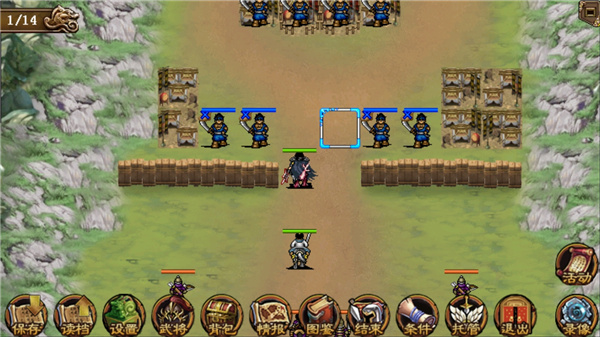 4、本关注意:敌人有很多波援军,都是人数少于4人时触发,所以尽量在我方回合还有不少人未行动时触发敌人援军。不过都是杂兵,没有太大威胁,可以通过守住营寨口来卡敌军的位置。