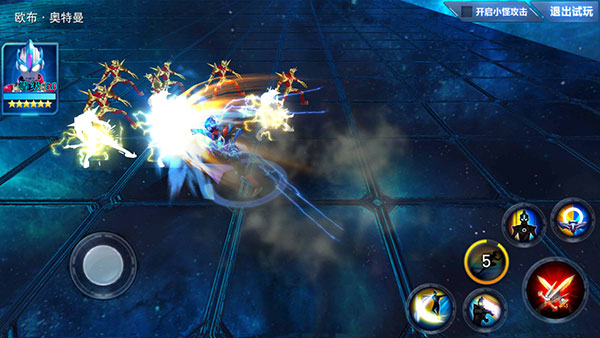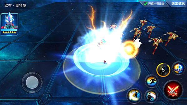 欧布以煌闪形态如雷电般向前突进,对敌人造成大量伤害的同时将会造成眩晕效果。