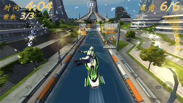 激流快艇1官方正版手游中不仅新增加了摩托艇,而且还有全新路线,画面效果更加养眼,水流的质感也更加真实,你将会在充满未来特色的12条水道中快速前进,体验赛艇带来的乐趣。与普通赛车游戏相比,在激流快艇1中文版中,你还可以在空中表演各种吸引眼球的特技动作,完成特技动作可以增加能量槽的蓄能,当你通过完成任务或者达到指定的条件后,还可以解锁属于你的成就。还在等什么,喜欢的小伙伴快来下载游戏畅玩一番吧!
