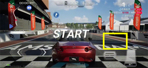 这里有个起步小技巧,在倒计时开始时,立刻按下油门键控制指针,使其来到白色区域附近,这样就不会手忙脚乱,轻松完成「完美起步」。