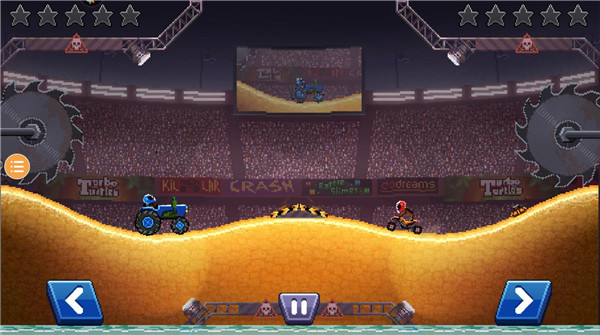另一方面,撞头赛车旧版本拥有复古的像素画风,操作也非常的简单,只需要左右滑动屏幕控制车辆的前进和后退,以及平衡和翻转,并且游戏中有各种不同的赛道和场景,每个都有不同的特点和难度,有些赛道会有各种机关和障碍物,比如弹簧、火箭、电锯等,给玩家带来更多的惊喜和危险,有些赛道还会有不同的物理效果,比如重力、摩擦、弹力等,可以让玩家感受到不同的驾驶体验,这是一款非常好玩的赛车撞击游戏,元素多样,玩法丰富,感兴趣的玩家可以前来下载体验!