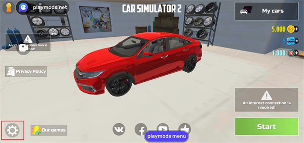 1、首先进入汽车模拟器2最新版,然后点击左下角设置按钮;
