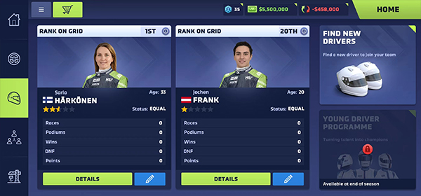 4、然后选择我们的驾驶员,一名好的驾驶员对赛车来说是非常重要的;