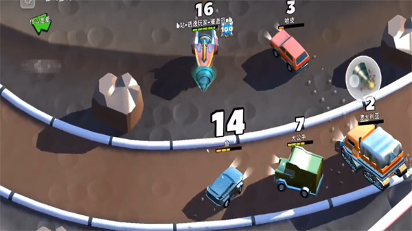 你以为各种乱撞就够了?当然不是,这款游戏与其说是撞车不如说是大乱斗。