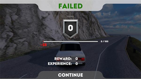 5、通过不断挑战,你可以提高驾驶技能,获得更好的成绩并解锁更多的车辆、赛道或游戏模式,当发生碰撞次数过多后游戏失败,需要重新开始。