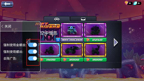 2、可以看到里面有强制使用金螺丝、强制使用螺丝、去除广告三个功能,需要哪个功能就可以点击开启