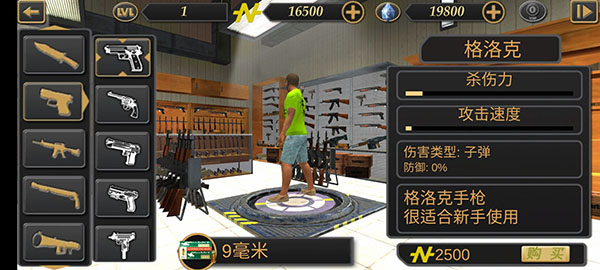 价格:2500金币,伤害类型:子弹;使用9毫米子弹,杀伤力低,攻击速度极慢;很适合新手使用。