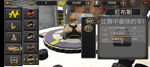 尼布斯:最大驾驶速度200、车辆加速度4、车辆生命3000;