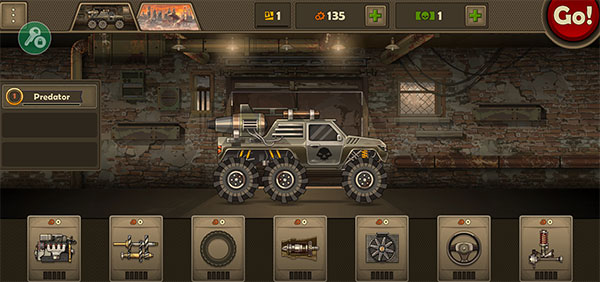 游戏中玩家们及时失败了也可以获得金币,金币可以让我们对汽车进行升级,如提高汽车的加速、防御能力等等,还可以在汽车上配置武器从而将僵尸们消灭在远处,而这些装备对于玩家们过关来说无疑是最重要的了。
