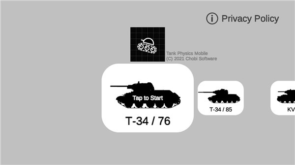 1、在本站下载并安装坦克物理模拟器手游,进入游戏有四款坦克可供选择