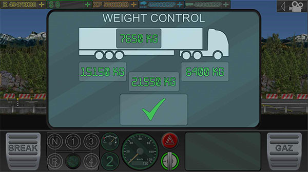 3、单击游戏中的左右按钮以掌握卡车的移动、你自己的卡车也可以换档,您可以自由解锁不同的卡车并在不同的游戏地图中驾驶