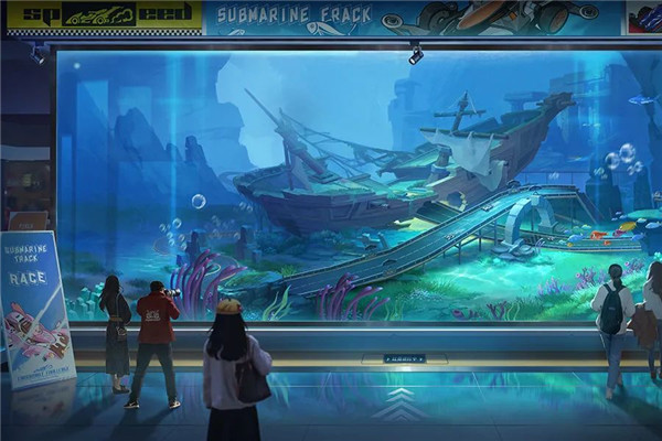 破旧的沉船静静地躺在深邃的水底,为赛场气氛增添几分神秘,色彩斑斓的珊瑚鱼群缓缓游动,各色四驱车疾速穿梭在蜿蜒的赛道上。透过巨大的玻璃幕墙,观众在感受四驱车所带来的紧张刺激之余,还能观赏绮丽的景色。