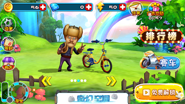 熊出没奇幻空间最新版加入了多样化的角色和载具解锁,给玩家带来不同的游戏模式,享受不同的游戏体验,同比正常游戏场景设计,场景关卡设计华丽,玩法新意,难度大,游戏还给玩家设计了无尽的闯关模式,在这里你可以尽情的挑战,同时尽可能的让自己能够获得更多的分数,当然还需要注意积累大量的金币,感兴趣的小伙伴还在等什么,快快来下载体验吧!