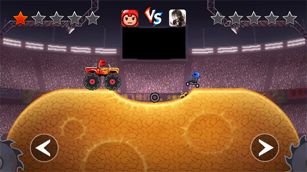 我车技贼6游戏操作简单,玩家可以点击屏幕,再点击开始游戏消耗一张入场券进入游戏游玩,游戏中玩家可以点击游戏两边的按键来进行移动,玩家需要撞击对方的头部即可加一颗星,玩家需要先到达5颗即可赢得胜利,游戏胜利后游戏还会为玩家发放丰富的奖励。在游戏中玩家将与自己的战车在赛场上与随机匹配的对手展开无限的碰撞,在赛场上使用各种武器与技能将其他参赛选手全部淘汰出局成为比赛的冠军获取比赛的胜利。还在等什么,有兴趣的玩家快来下载我车技贼6游戏畅玩一番吧!