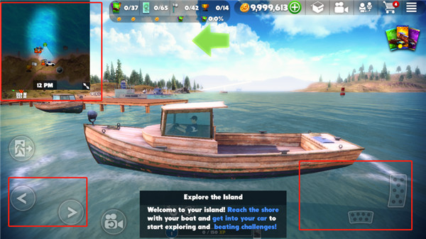 2、进入游戏后,玩家是在船上,你可以通过通过左边的按键控制方向,右边的按键来控制油门和刹车;