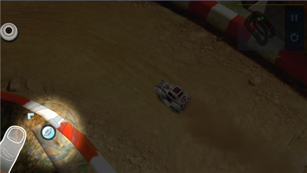 1、下载好后进入游戏,开始赛车,通过左边方向盘来改变驾驶方向
