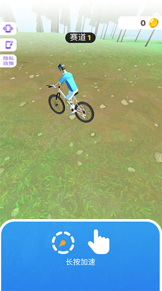 1、从本站下载并安装,打开游戏后,长按屏幕是游戏开始,也是自行车加速;