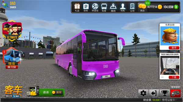 5、购买更多的车型,升级自己的公交车,挑战丰富的游戏任务,解锁更多称号。