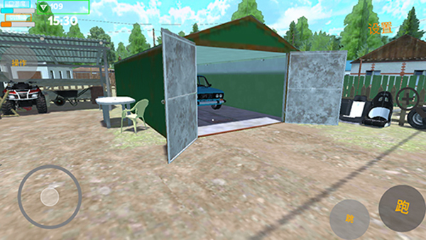 3、继续点击New Game,进入到游戏里面之后,玩家就可以直接去走出房间了,然后走出房间你们需要去找到自己的车库了,这个时候你们需要对准车库门后点击开门进入车库;