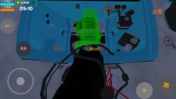 4、你们在找到自己的车库之后,你们的车辆是完全散装的状态,所以你们需要把车辆组装起来。我们需要做的事情就是将零件一个个的安装进汽车里(对准物品点击左上角操作,将物品放置到汽车指定位置,点击操作安装),将所有物品安装好之后进入汽车。