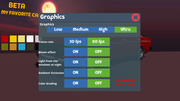 1、下载安装好我的爱车,打开进入在游戏开始前点击设置可以调整一下游戏的画质、音效、语言等;