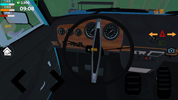 5、进入汽车之后,将准星对准汽车方向盘后面的钥匙孔,长按左上角操作启动汽车(注意一定要长按,直到汽车仪表盘动了为止),此时汽车已经启动完毕,通过右下角刹车油门控制汽车移动。