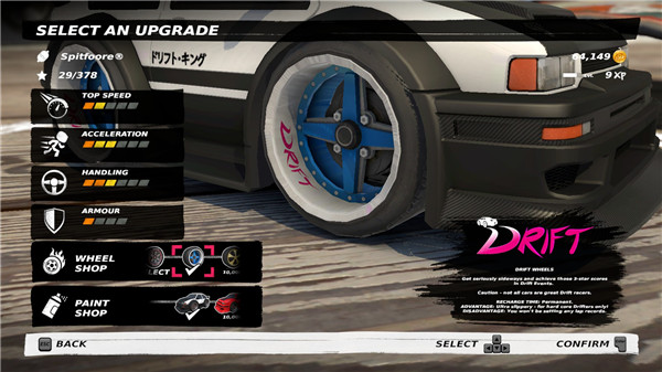 举个例子:下面是我的AE86——咳咳我指的是Apex GT85,它的漂移能力排名在传奇级(传奇是为Apex做的特定等级,是游戏中最好的)。