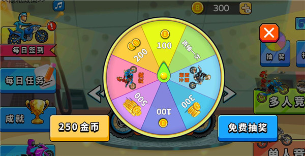 5、也可以通关抽奖获取金币奖励和新的摩托车
