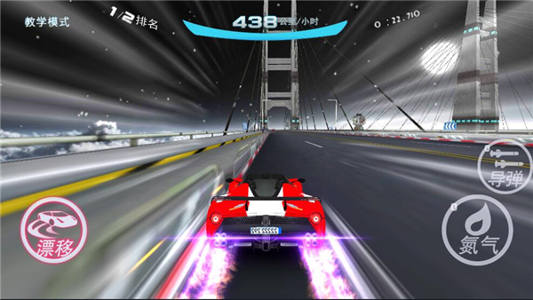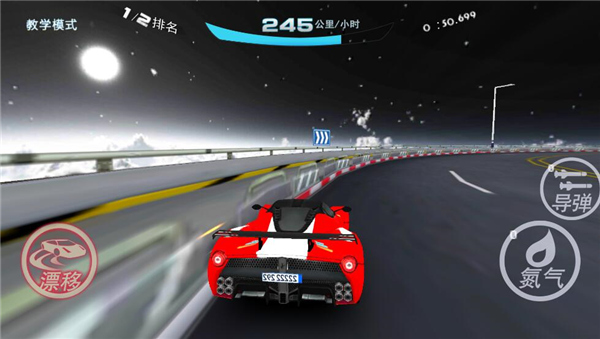 2、点击右下方氮气按钮,可在短时间突破极限速度,对氮气的熟练使用是高手的标志喔!