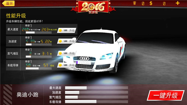 4、在强化中,玩家可以强化汽车的各种属性。
