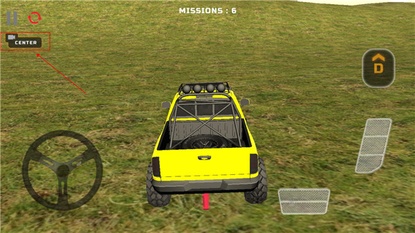 3、游戏以左边为轮盘控制方向,右边加油停止。点击右边上方的D即可倒车。