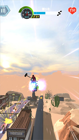 5、在赛道有特殊的飞跃台,可直接飞跃近路赛道。