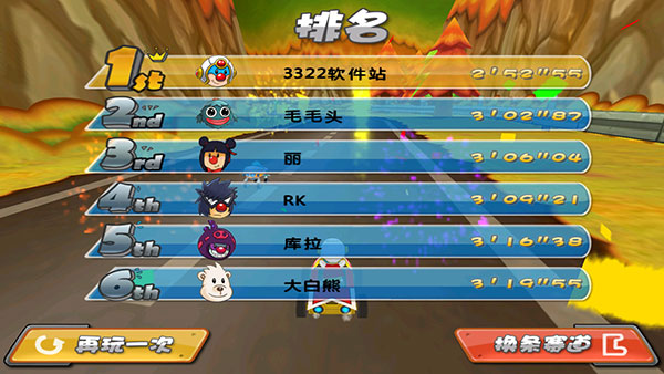 6、最后就会显示玩家的名次和具体用时,确认之后可以选择再玩一次。