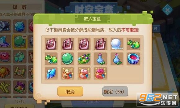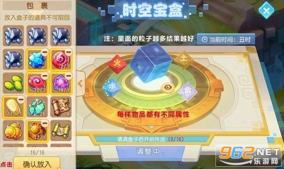 1、作用:每周可以上交16件物品,宝盒会进行重组,并带回新效果物品。使用方法:宝盒放入物品,确定开始传送