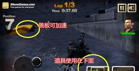 进入游戏之后我们可以看到分布在屏幕上的按钮和数据,如图我们可以看到,屏幕左下侧为人物移动,右下侧为攻击(注意:攻击可以一直按住),其他都是数据内容玩家不能操控左侧大大的数字代表你目前的排行,右侧代表人物的血量,人物死亡后会在死亡点重生,屏幕最上方代表赛道的圈数和当前消耗的时间;
