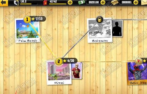 游戏里主要有两种模式,一种是限时达模式,另外一种是竞速模式。在这两个玩法模式的基础上,玩家同样可以通过升级硬件来提高快艇的属性,例如升级各种快艇零件等,这个和赛车硬件升级系统其实差不多。除了升级高级快艇之外,玩家还可以购买飞机、房屋、家具、服装等道具来提高其他属性,例如飞机可以减少一半的等待时间。游戏内也采用了体力系统和星级系统,当燃料耗尽的时候,玩家暂时无法继续游戏,除非是花钱购买燃料或等待时间恢复,同时,每个任务都有详细的指标,只有满足那些任务条件才可以获得星星解锁其他关卡。说实话,这款游戏整体玩法还是有点千篇一律,似乎还无法让玩家肾上腺素持续暴增。