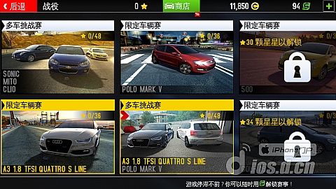 狂野飙车8主打的生涯模式和联网对战模式,同样也搬到了GT2赛车中,GT2赛车提供了各种单机赛事,不过相对于A8,GT2赛车在联网互动方面得到了一定程度加强,例如联网模式下的赛事更多,玩家可以定期参加联网赛事,即使错过也能通过花费金币来重新参加。提到这里,不得不再吐槽一下GL一贯的坑爹内购,游戏在每场比赛前居然可以用金币或者内购付费来提升车辆性能,就连升级方面也可以“花钱”请更NB的机修工来进行,这方面“真实性”真是刚刚的,没得说!