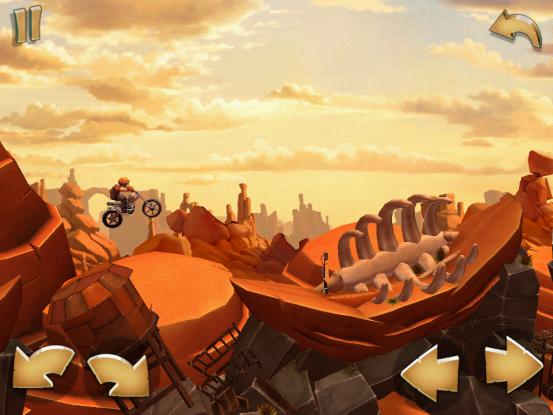 其实这款游戏不仅仅只是在手机上出现的,Xbox以及PS3上特技摩托系列均拥有发售,此系列的优良画质是有血统性的,《特技摩托:前线》虽然没有主机版本那么金属味知足,但是其独树一帜的粗狂风格也预示着游戏自身的特性。